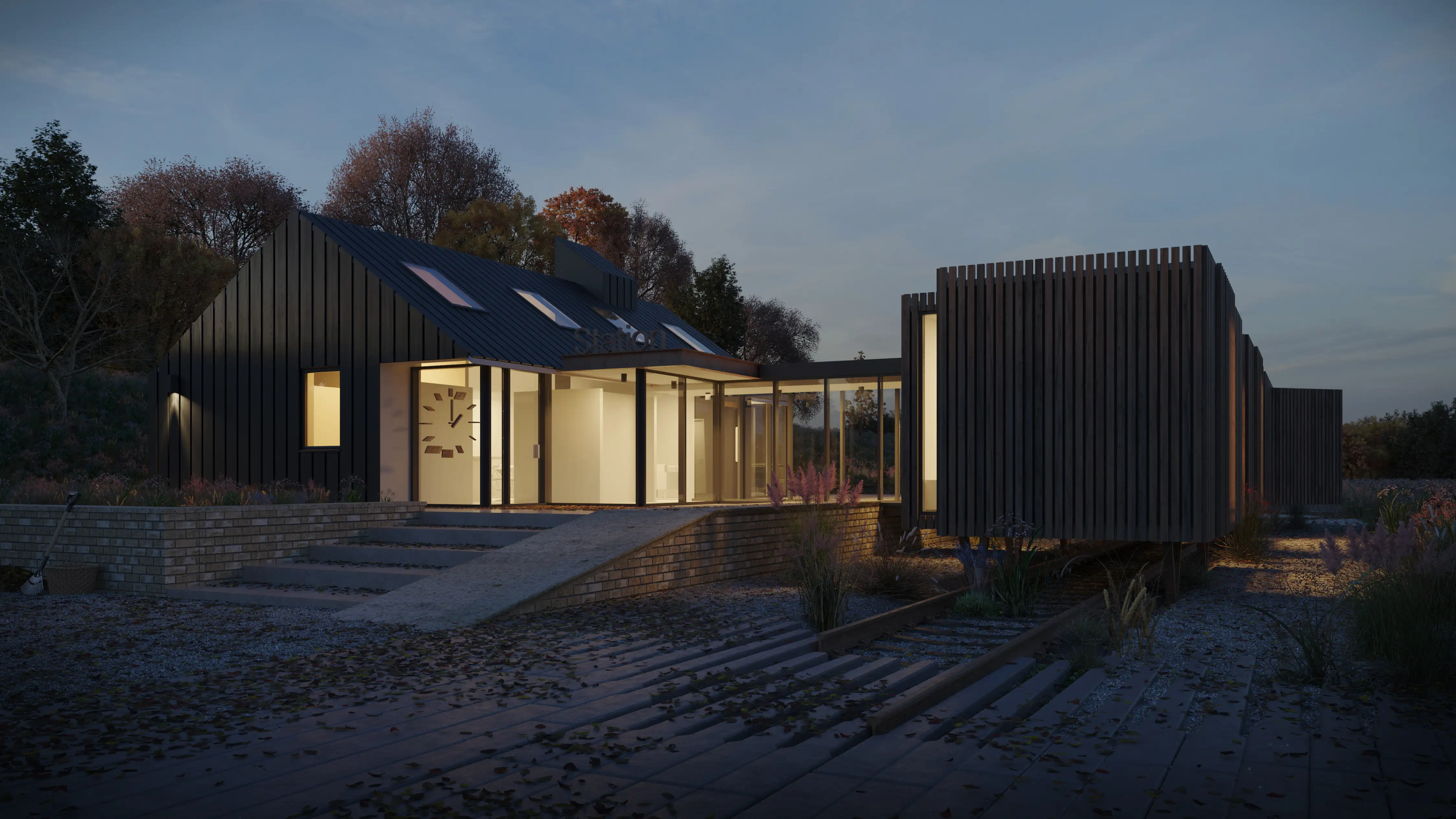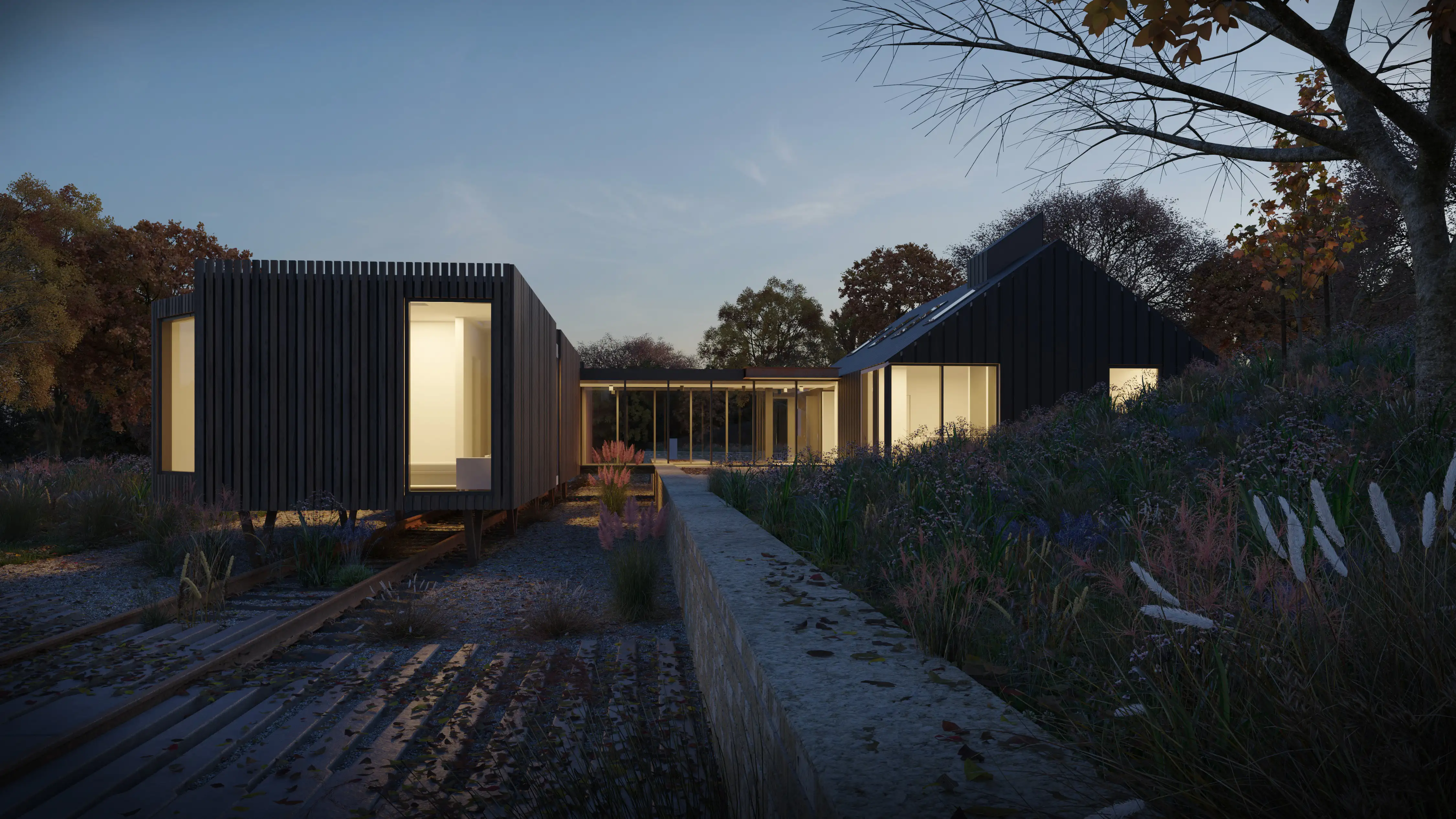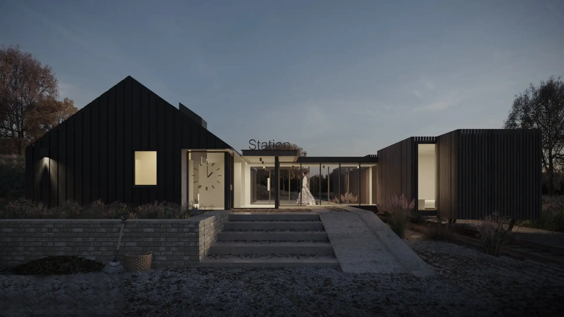 We engaged with Design Midlands to undertake a rigorous design review panel process to demonstrate compliance with Paragraph 80, alongside continuous dialogue with the planning team at Rutland County council Planning Department. After a successful design review and a lengthy determination process, planning was granted. The approved design took inspiration from the former use of the site and existing platform structure. In essence, the architectural concept derived from a re-interpretation of the ticket office sitting beside a set of train carriages ready to depart. In this way the dwelling retained the symbolic presence of the site’s former industrial use.