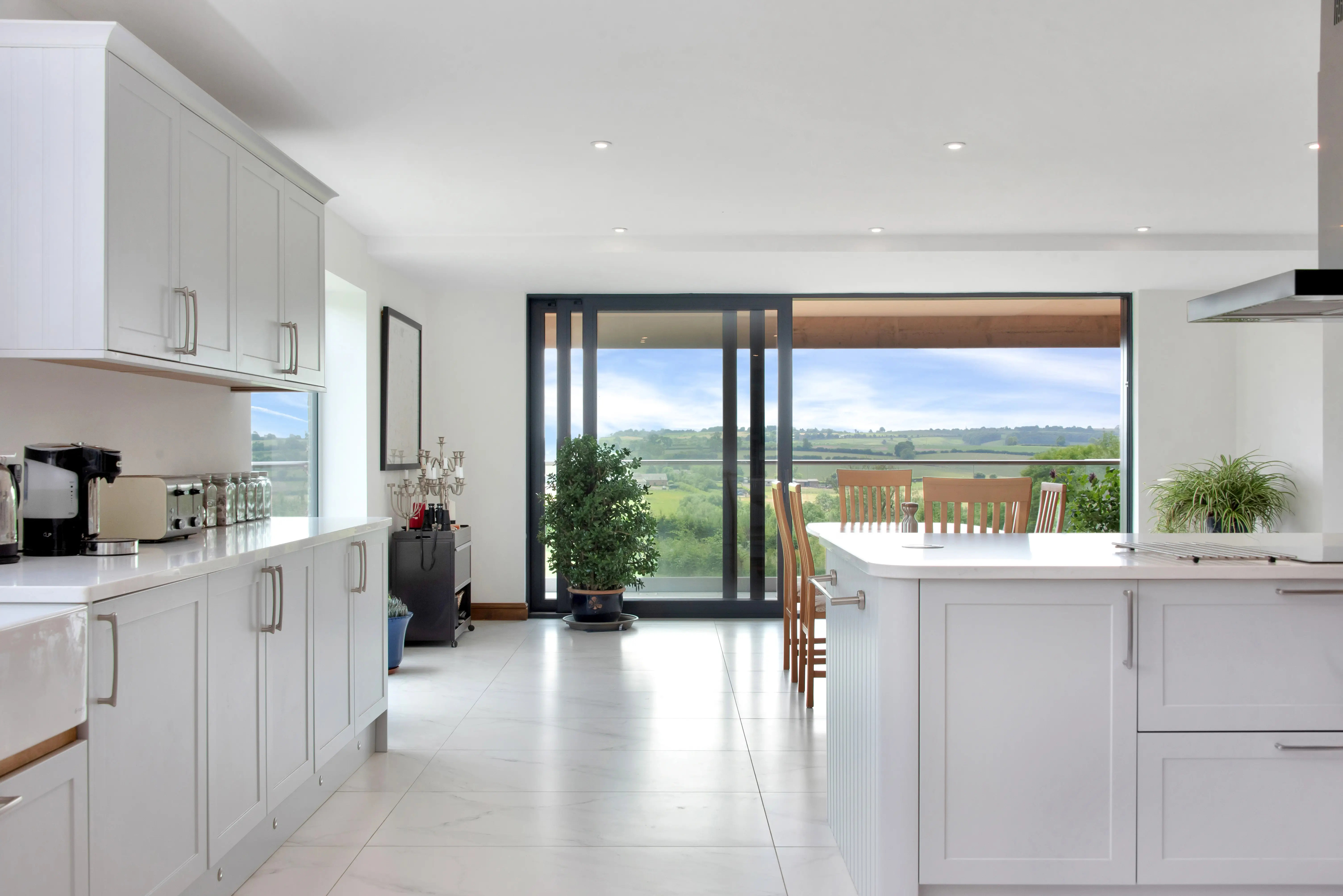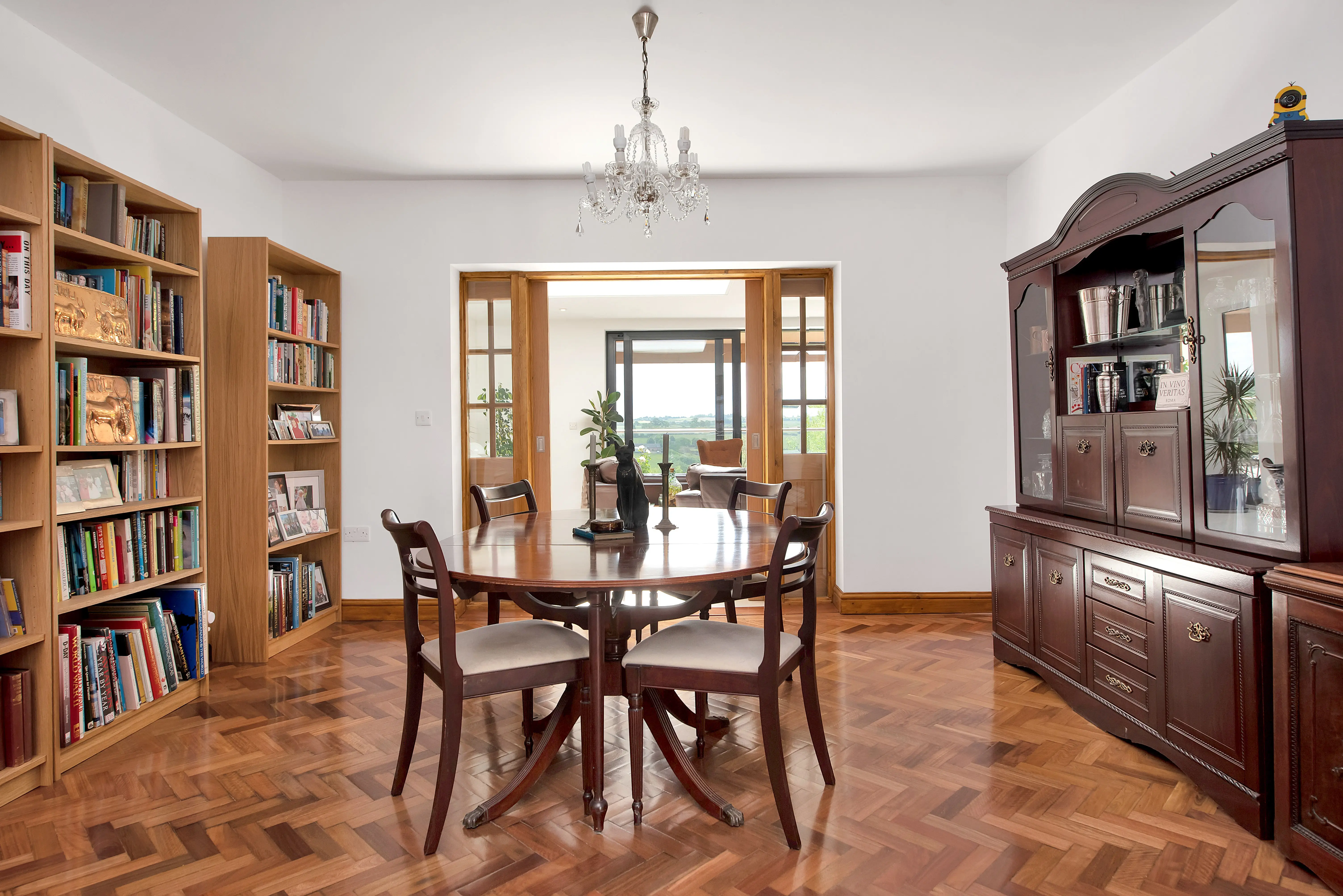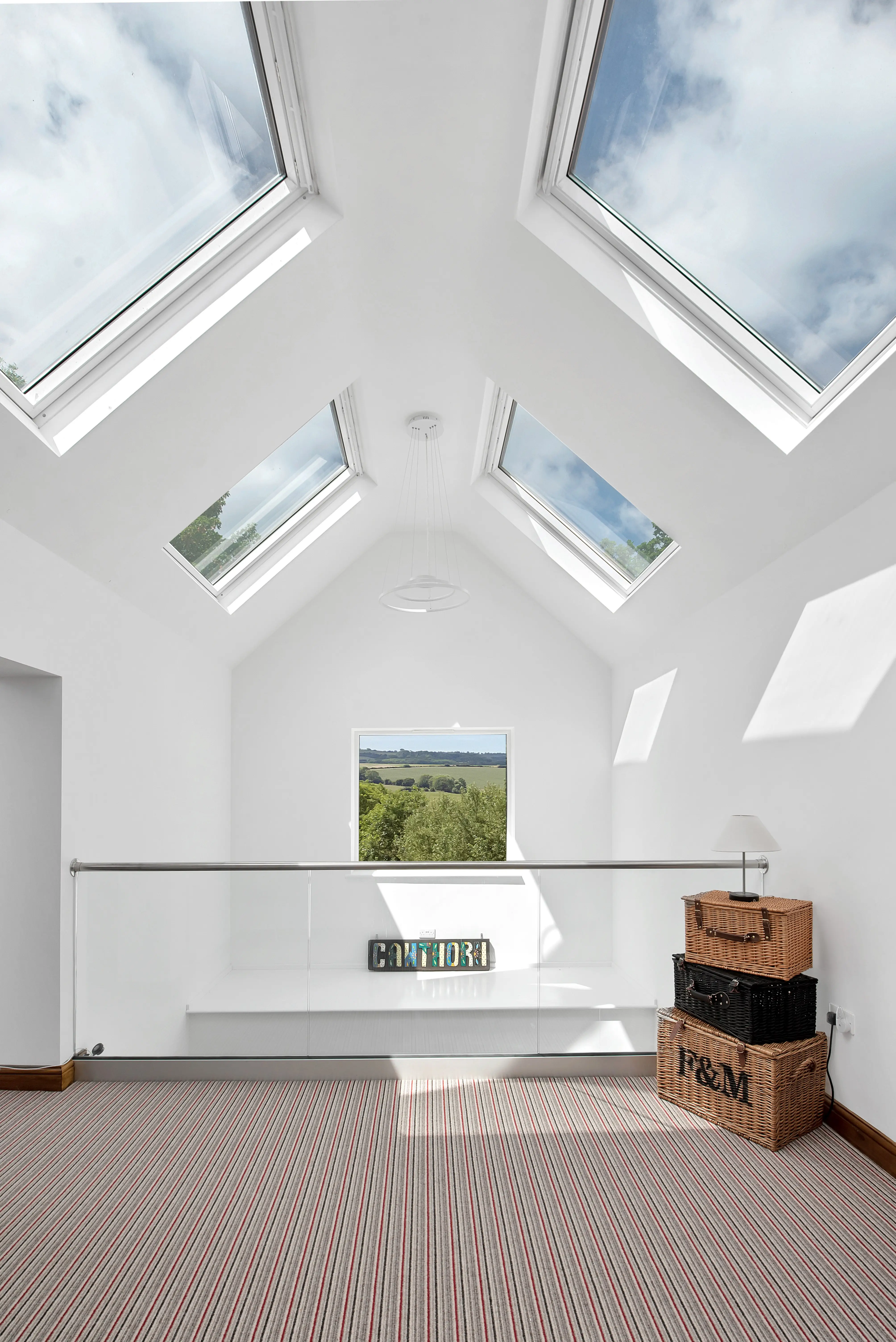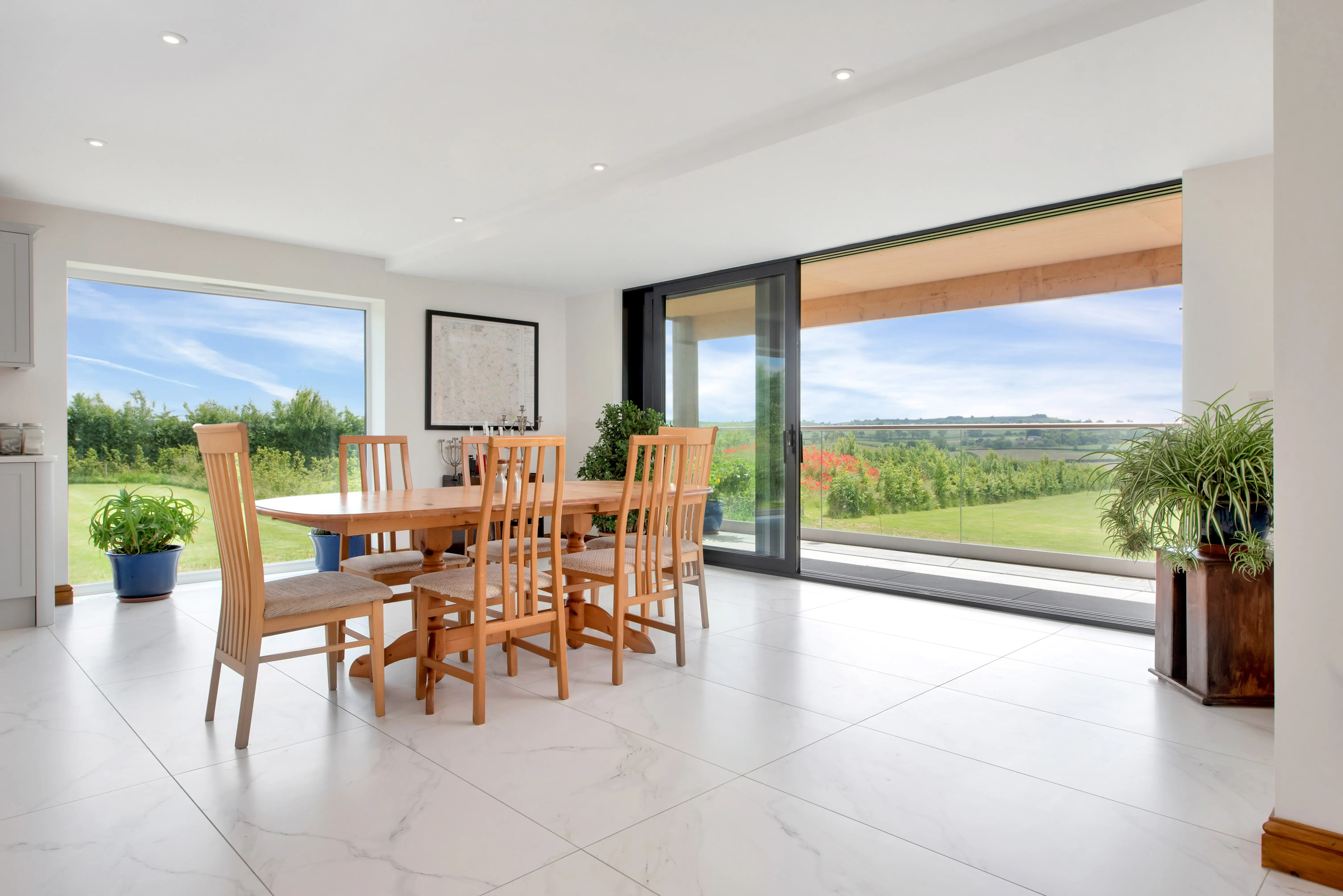 As part of the proposals, the client’s personalities were really given the opportunity to shine through; as keen art collectors, positioning of key pieces were considered as part of the design. Specific walls were earmarked for displaying artwork, with specialist lighting proposed in the final specification. Favoured parts of the existing building were retained and restored in the final design, including the original parquet flooring in the hallway and dining spaces. Picture windows, balconies, velux roof balconies and large sliding doors were all used to capitalise on the views, creating various vistas throughout the house rooting this home in the landscape.